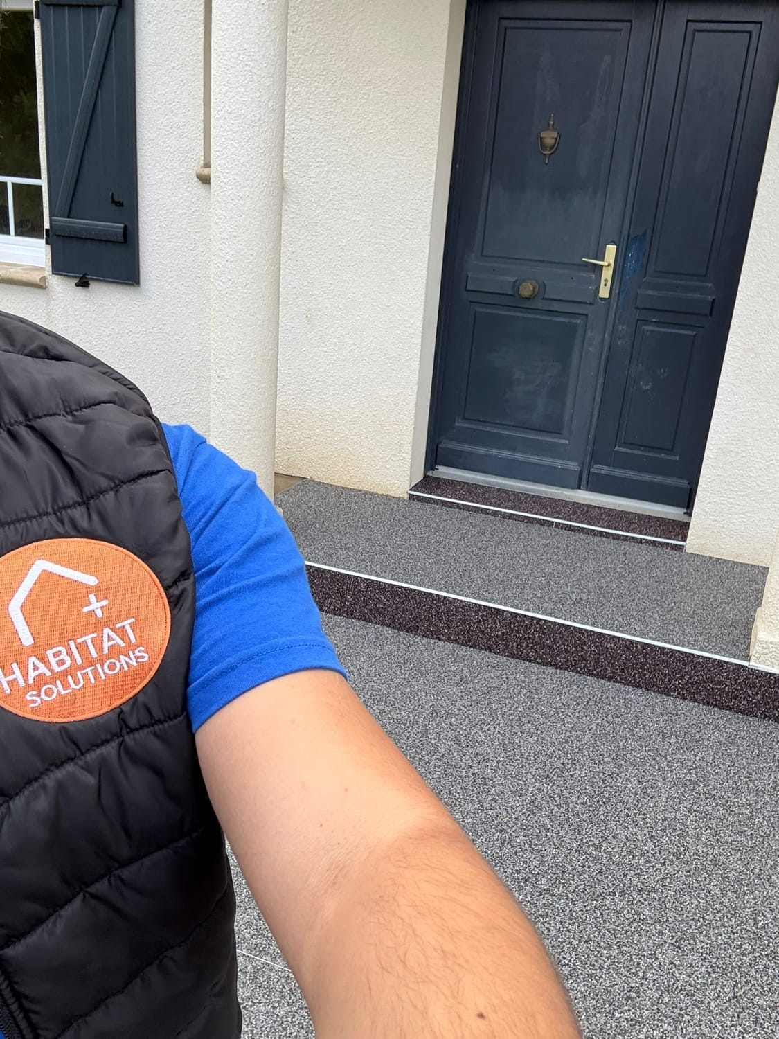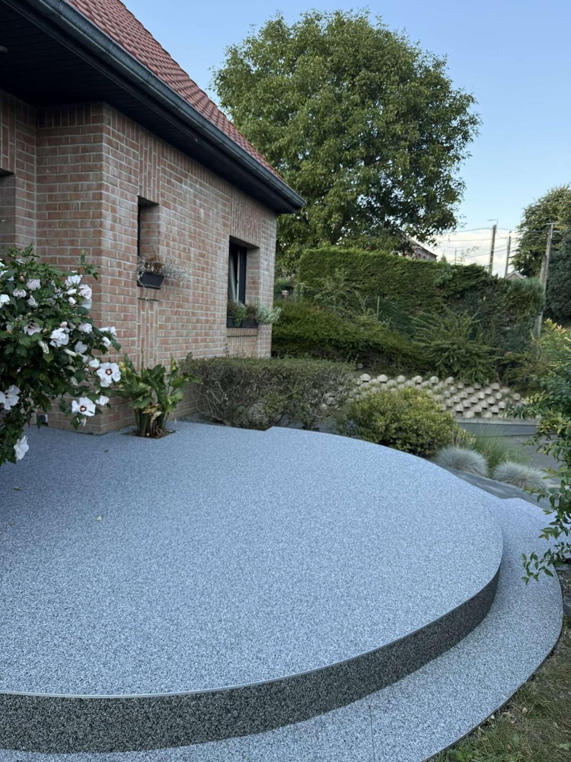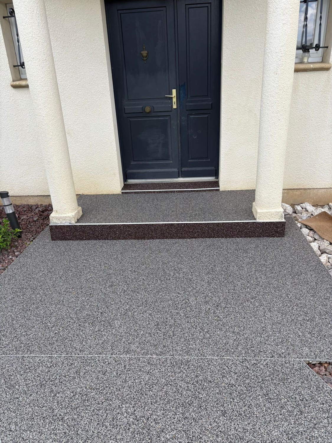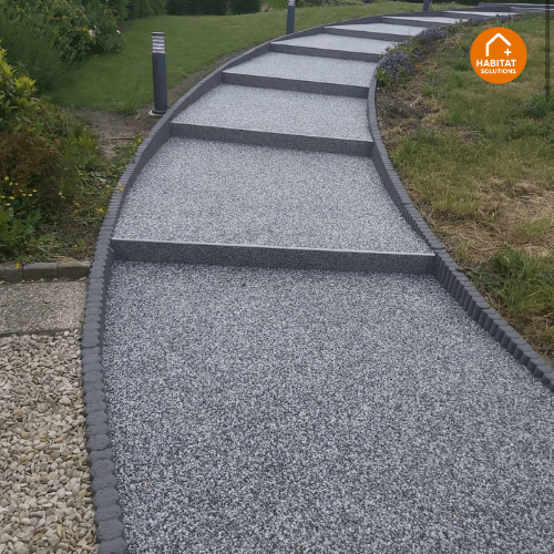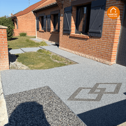 Habitat Plus Solutions crée des allées, terrasses et entrées de maison en marbre résiné pour une finition haut de gamme, durable et facile d’entretien.