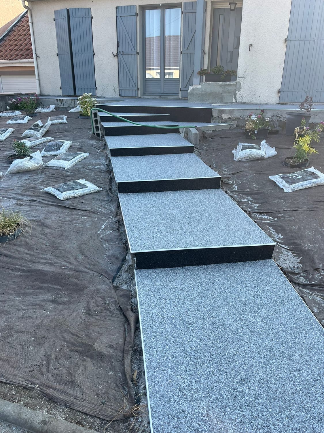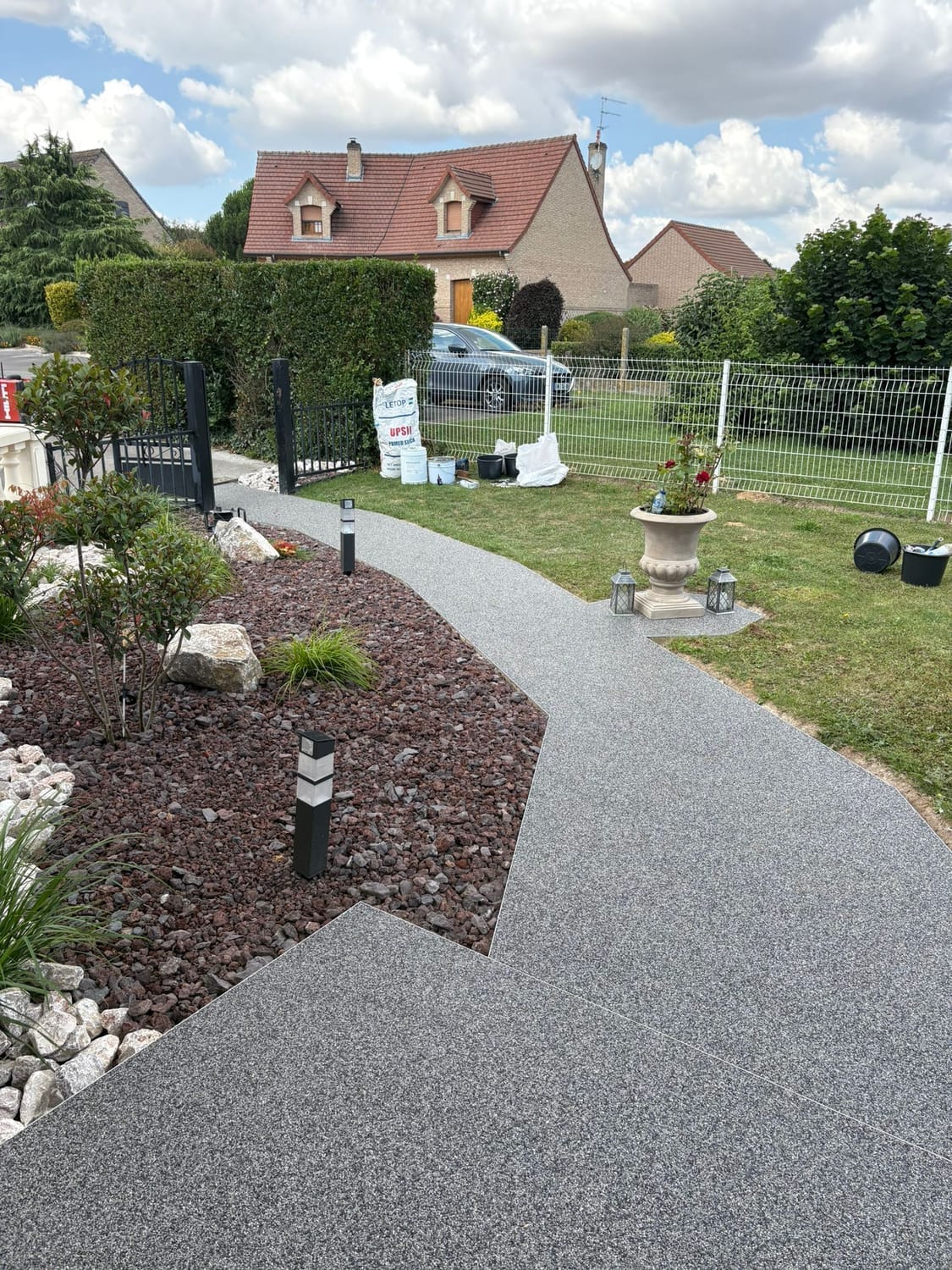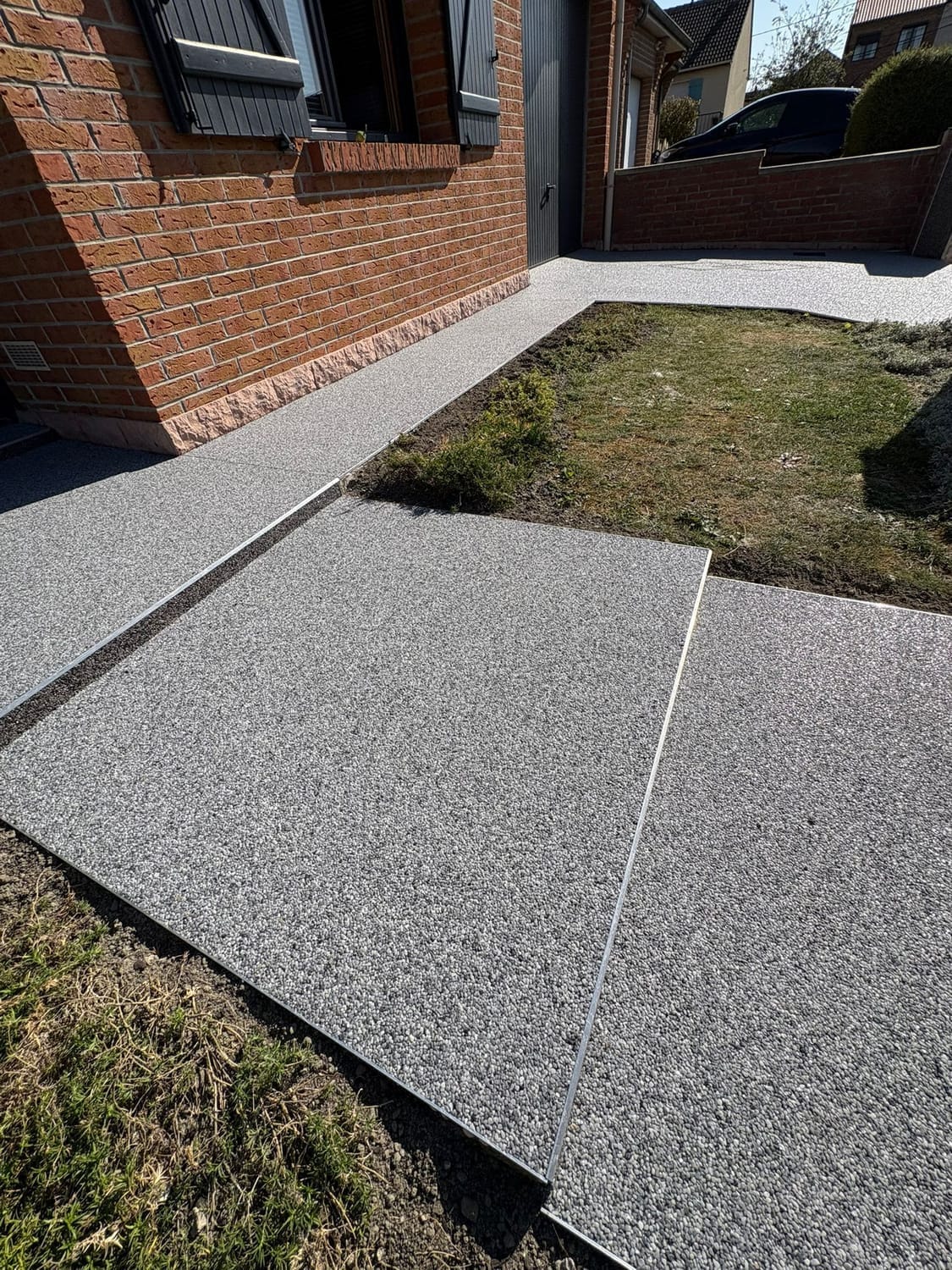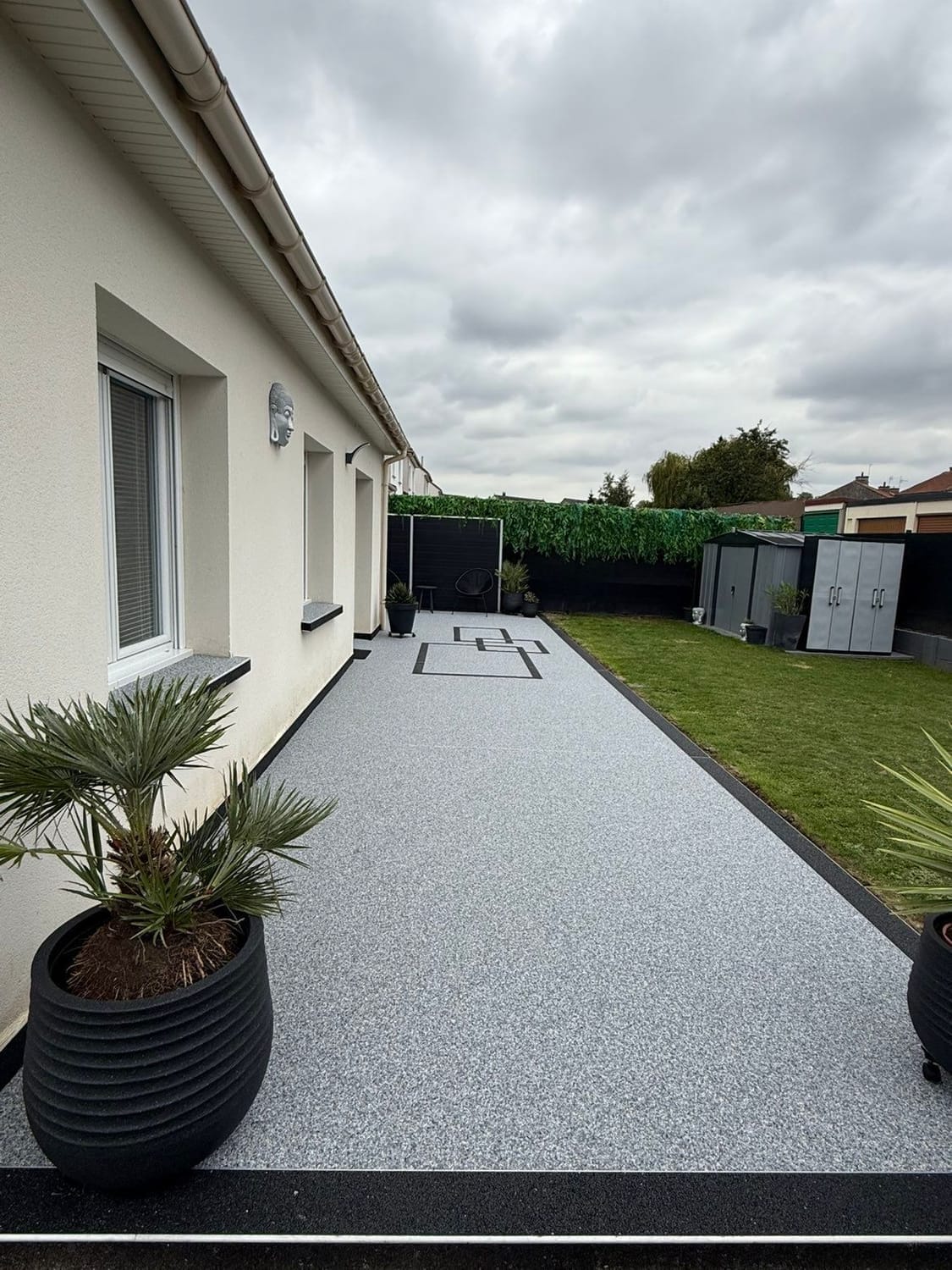Habitat Plus Solutions crée des allées, terrasses et entrées de maison en marbre résiné pour une finition haut de gamme, durable et facile d’entretien.