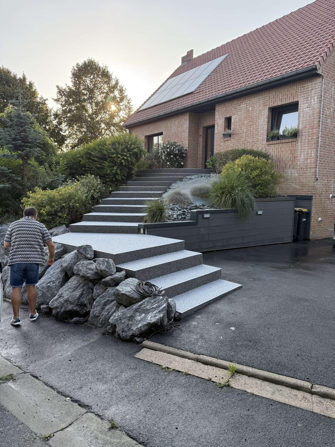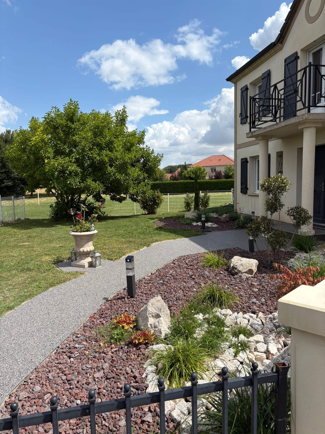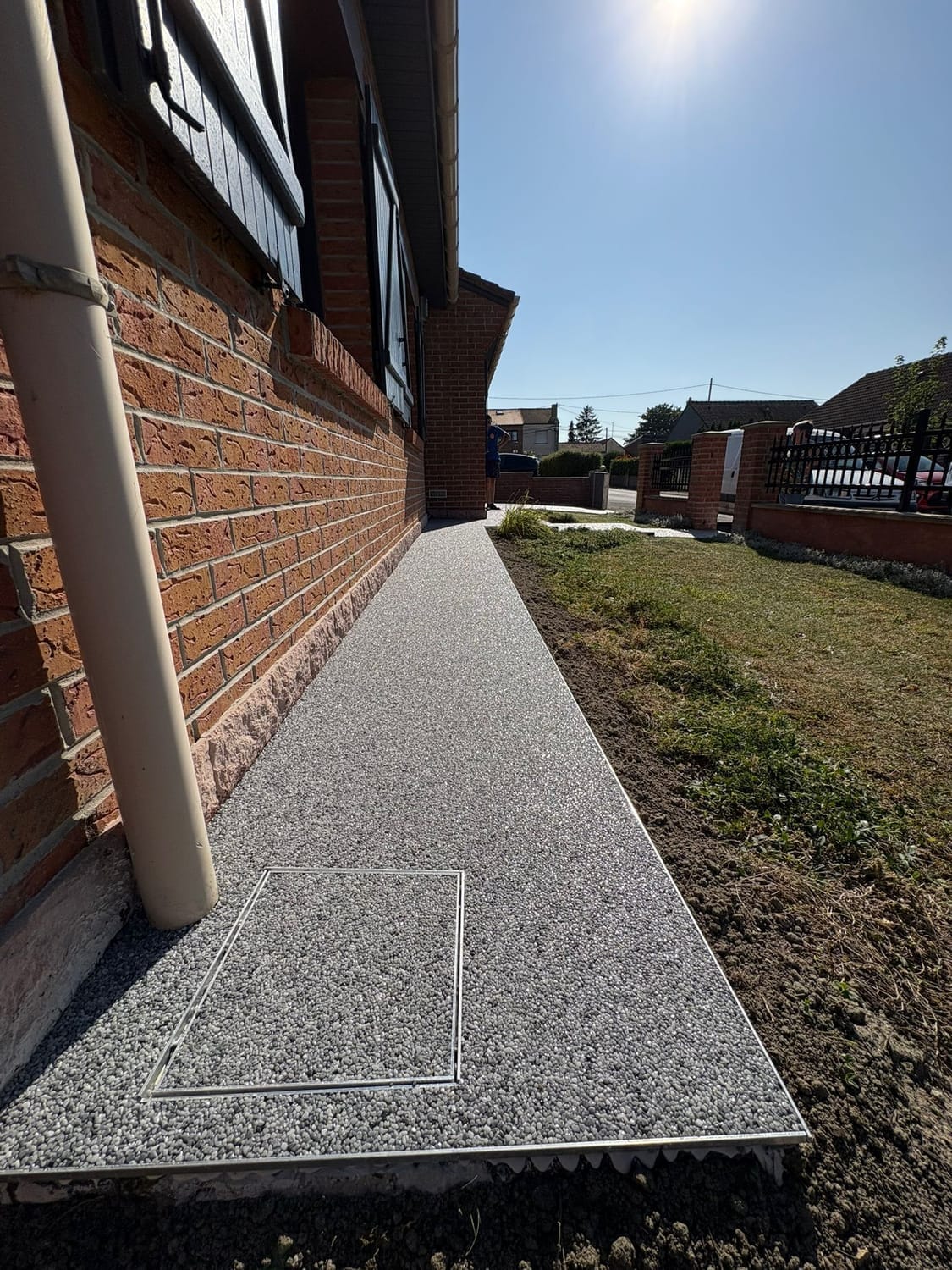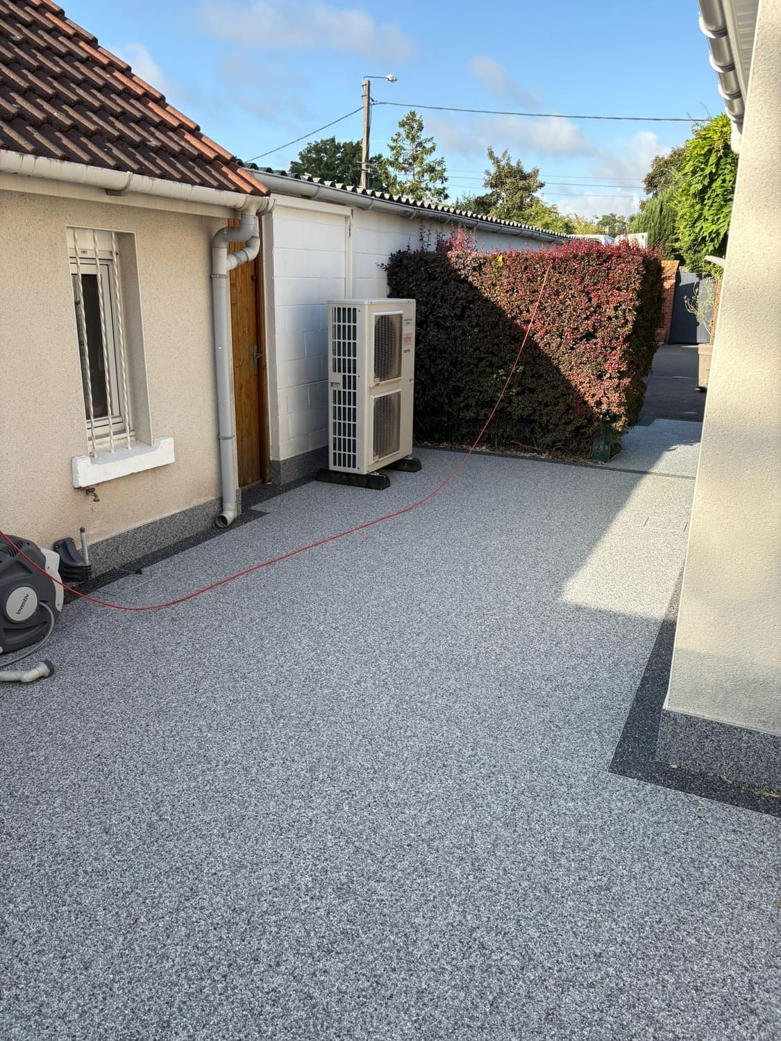 Habitat Plus Solutions crée des allées, terrasses et entrées de maison en marbre résiné pour une finition haut de gamme, durable et facile d’entretien.